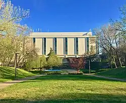 In 1962 Wascana Centre Authority was established to govern the sprawling 50-year-old, 930 ha (2,300 acres) urban park and legislative grounds. A 100-year plan was developed by World Trade Centre Architect Minoru Yamasaki[38] and landscape architect Thomas Church, as part of developing a new University of Saskatchewan campus in the southeast end of the park. The master plan has been subsequently revised every five to seven years since, most recently in 2016.[39] Wascana Centre has made Regina as enjoyable and fulfilling for residents as it had long been the "metropole" for farmers and residents of small neighbouring towns. Despite the setting, improbable though it always was compared with other more likely sites for the capitol, the efforts' results were favourable.