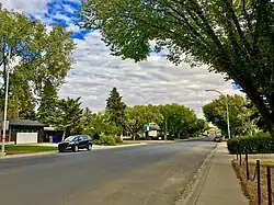 The city is situated on a broad, flat, treeless plain. There is an abundance of parks and greenspaces: all of its trees — some 300,000[43] — shrubs and other plants were hand-planted.[44] As in other prairie cities, American elms were planted in front yards in residential neighbourhoods and on boulevards along major traffic arteries and are the dominant species in the urban forest.