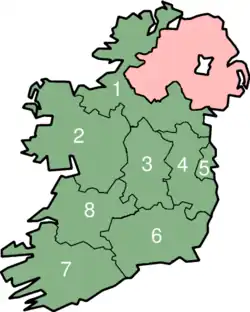 | Mid-East | County Kildare, County Meath and County Wicklow | |