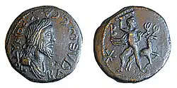 Through some means, the Goths appear to have left or been driven away, leading to the resumption of local self-rule in the late 5th century under rulers such as Douptounos, who re-oriented the kingdom towards the Byzantine Empire as a client state.[21] Such a re-orientation is also evidenced by the presence of Byzantine coins in the Crimea, including coinage of emperors Justin I (r. 518–527) and Justinian I (r. 527–565).[23] By Justinian's time, the Bosporus was under a barbarian ruler once more: the Hunnic ruler Gordas. Though Gordas maintained good relations with Justinian, he was killed in a revolt in 527, which led the emperor to send armies to the Bosporus, conquering the lands of the kingdom and establishing imperial control there.[24]