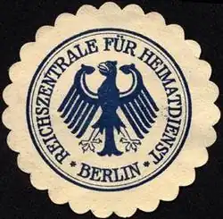 Reichszentrale für Heimatdienst ("Reich Agency for Homeland Service") was an organisation established in Germany in March 1918 to disseminate propaganda and educational material. It was soon to play a role in the emergent Weimar Republic.[1] The organisation was dissolved on 16 March 1933 following the Nazi seizure of power. In many ways it was replaced by Joseph Goebbels's Reich Ministry of Public Enlightenment and Propaganda established on 14 March 1933.[2]