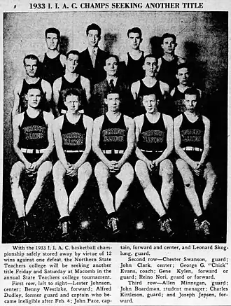He attended Northern Illinois State Teachers' College in DeKalb, where he was a multi-sport athlete, earning a total of 17 athletic letters in football, basketball. track and field, and wrestling.[3] While at the school he gained the nickname "The Flying Finn."[3]