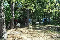 A North Carolina study compared the effectiveness of goats versus chemicals in clearing kudzu from an infested area, and found the goats to be drastically more effective than were the chemicals.[13] Goats can also reduce the threat of forest fires by cleaning up combustible materials without the need for any chemicals or gas-powered machinery.[14]