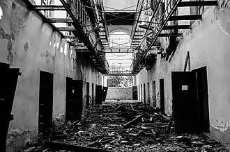 The ban was followed with a wave of arrests: approximately 600 communists being arrested, including many of its leaders.[5] They were held in the Doftana prison, which was notoriously one of the harshest prisons in Europe, according to contemporary human rights and civic rights organizations.[6] Only after mid-1930s, when the prisoners gained the status of "political prisoner", the conditions improved and the inmates were allowed to have access to books.[6]