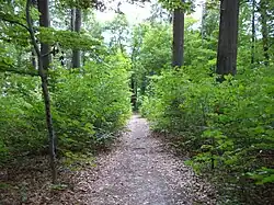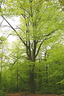 The park retains natural multi-layered, multi-species tree stands with a slightly impoverished forest floor, likely due to late 19th-century alterations.[7] Over two-thirds of its stands exceed 100 years, making it Upper Silesia's largest and one of Poland's most notable clusters of monumental trees, with around 110 qualifying as natural monuments.[13] As of 2019, only seven have this status: four European beeches, one pedunculate oak, one small-leaved lime, and one eastern white pine.[30]
