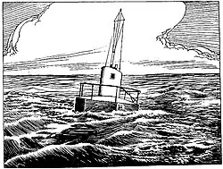 The initial buoys were a simple design, 2 m (6 ft 7 in) high, and 1 m × 5 m (3 ft 3 in × 16 ft 5 in) in size, offering little in the form of shelter. A flag pole allowed a flag or lamp to be hoisted, supplies included a basic medical kit, iron rations, water, life jackets and ropes.[1]: 91