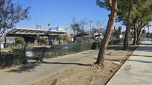 Reseda station is a station on the G Line of the Los Angeles Metro Busway system.[4] It is named after adjacent Reseda Boulevard, which travels north–south and crosses the east–west busway route. The station is in the Los Angeles neighborhood of Tarzana.