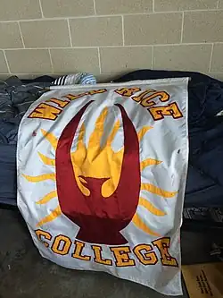 KTRU Rice Radio, the university's student-run radio station, and Rice Coffeehouse both began at Hanszen College.[41][42] Hanszen was the first residential college at Rice to use its own crest. Shortly after the founding of the residential college system, the students created the blue, black, and yellow crest that in time became the symbol of the college, setting a precedent for the other colleges.[43]