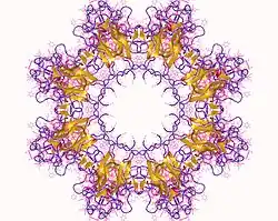 - ^ a b c Tolun G, Vijayasarathy C, Huang R, Zeng Y, Li Y, Steven AC, Sieving PA, Heymann JB (May 2016). "Paired octamer rings of retinoschisin suggest a junctional model for cell-cell adhesion in the retina". Proceedings of the National Academy of Sciences of the United States of America. 113 (19): 5287–92. Bibcode:2016PNAS..113.5287T. doi:10.1073/pnas.1519048113. PMC 4868477. PMID 27114531.