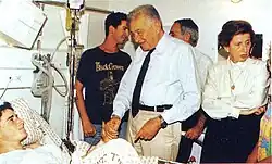 In 1951 Ezer Weizmann was accepted to study in the British Air Force and the couple moved to England, where their eldest son Shaul was born. Their daughter Michal was born four years later.[4] Shaul was severely wounded in the canal front during the War of Attrition when an Egyptian sniper shot him on the head. In 1991, Shaul was killed with his wife in a car accident and they were both buried in the cemetery in Or Akiva. In March 1991, a woman sued the Weizmann couple and the estate of their son Shaul, claiming that Shaul was the father of her son. A tissue test that the Weizmann couple underwent proved that the boy is indeed Shaul's son.[5]