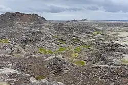 A number of off- and onshore eruptions at Reykjanes are recorded by medieval Icelandic annals and sagas as having taken place between 1210 and 1240.[7] As well as depositing tephra across the peninsula, they produced dozens of square kilometres of lava flows, now known as the Yngra Stampahraun, Eldvarpahraun, Illahraun and Arnaseturshraun. The eruptions are known as "fires" for being a series of eruptions over a specific period in the same area. The exact length of each eruption is not known.[8] The specific events recorded were in: