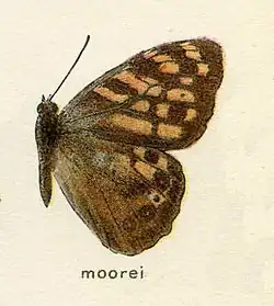 Rhaphicera moorei, the small tawny wall, is a species of satyrine butterfly found in western China, India (Simla and Sikkim) and Tibet.[1]