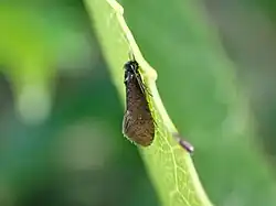 Larvae of this species build small protective cases in which they hide and from which they feed.[6] Adults of this species have been observed on the wing in November and January.[3][5]