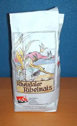 Rheintaler Ribelmais, Rheintaler Ribel or Türggenribel is a ground product that is made from a traditional type of maize grown in the Swiss Rhine Valley and Liechtenstein. Since summer 2000, Rheintaler Ribel AOP (formerly AOC) has been the only Swiss cereal product with a protected geographical indication.[1] The name Ribelmais comes from the traditional dish, Ribel, from which it is made.