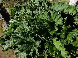In Pakistan locals eat the leaf stalk cooked as in the West. The root is used as a purgative.[1][8] In the Chitral valley the stems of the unripe inflorescence and leaf stalks are also eaten raw for the taste. Poor children collect the plant from the wild to sell in the market for money.[8]