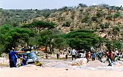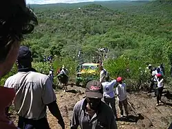 The event, supported by guard post sponsors,[5] event sponsors[6] and raffle donors,[7] takes place at the end of May/beginning of June each year around the Kenyan public holiday Madaraka Day and is open to all, subject to the Rules and Regulations[8] stipulated by the organising Committee. The Committee keeps the event location secret until the day of the event. The secrecy of the location prevents people from being tempted to look at the site ahead of time. A map of the past Rhino Charge venues can be seen here.