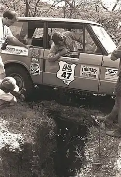 The Rhino Charge is an annual off-road competition held in Kenya in which entrants are required to visit a number of points (Guard Posts) while travelling the shortest possible distance across difficult, trackless terrain, where speed is penalised. The event is organised in order to raise funds to support the activities of the Charitable Trust Rhino Ark.