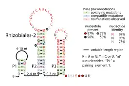 ![]() Consensus secondary structure of Rhizobiales-2 RNAs | |