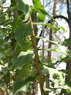 Rhodocactus is a genus of flowering plant in the cactus family Cactaceae, native to central South America.[2] Unlike most species of cacti, Rhodocactus has persistent leaves and a fully tree-like habit. The genus was sunk into a broadly circumscribed Pereskia, but molecular phylogenetic studies from 2005 onwards showed that with this circumscription Pereskia was paraphyletic, and in 2016, Rhodocactus was restored for southern South American species.