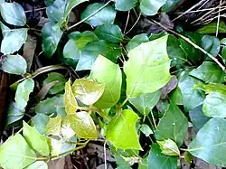 It was first described in 1859 and was formerly placed within the genus Cissus.[1] Its species name 'rhomboidea' is traced from Latin rhombus, which translates to ‘a four-sided geometrical figure with all sides and opposite angles being equal’, pertaining to its diamond-shaped leaves.[5]