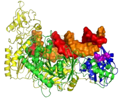 - ^ Sarafianos SG, Das K, Tantillo C, Clark AD, Ding J, Whitcomb JM, et al. (March 2001). "Crystal structure of HIV-1 reverse transcriptase in complex with a polypurine tract RNA:DNA". The EMBO Journal. 20 (6): 1449–61. doi:10.1093/emboj/20.6.1449. PMC 145536. PMID 11250910.