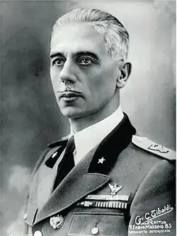 In July 1914, while serving in Rome at the Army General Staff, he was placed at the disposal of the Ministry of the Colonies and assigned to the command of the troops of Tripolitania. In March 1915 he was repatriated and reassigned to the General Staff; after the entry of the Kingdom of Italy in the First World War, on 24 May 1915, he was attached to the Supreme Command as aeronautical consultant. He was promoted to major on July 7, and in December he was transferred to the Ministry of War, tasked with the organization and employment of the first air units. He was promoted to lieutenant colonel on December 16, 1916 and to colonel on August 16, 1917. On 26 August 1916 he married Countess Angelina Lovaria, with whom he had two children, Fabio and Gilda. In October 1917 he returned to the front, first as air force commander of the 3rd Army and then, until March 1918, as head of the aeronautical services office at the Supreme Command. For his merits as a pilot and organizer he was decorated with a silver medal for military valor. From 1 April 1918 he assumed the post of Chief of Staff of the 15th Division, and on 27 October he was seriously wounded in the head on Monte Pertica, in the Mount Grappa massif, being awarded a second Silver Medal for military valor.[1][2][3][6][4][5]