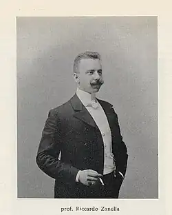 Zanella was born to an Italian father and Slovene mother in Fiume, Austria-Hungary (present-day Croatia). He attended Hungarian Commercial School in Fiume and Budapest. Soon he was a teacher of bookkeeping in the same school in Fiume, but year later he resigned. During the clash between Liberalism and radicalism in Hungary, Zanella emerged as the local leader of the Kossuthist faction in Fiume. He became the leader of the Autonomist Association, known also as the Autonomist Party in Fiume, after Michele Maylender resigned in 1901.