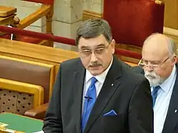 In 1998 and 2002 he managed to secure a seat again as an individual representative for Constituency X, Borsod-Abaúj-Zemplén County. Since 2000 he served as a vice chairman of the Committee on European Integration.[2] At the October 2002 municipal elections he became a member of the Borsod-Abaúj-Zemplén County Assembly. In the course of the development of the organisational structure of Fidesz-Hungarian Civic Union in 2003, he was charged with heading the Debrecen constituency. Upon the invitation of parliamentary faction leader János Áder, at the beginning of September 2004 he took over the chair of the integration cabinet from József Szájer, who had been elected member of the European Parliament.[1] He was elected MP for Sátoraljaújhely in the 2006, 2010 and 2014 elections. He is the current Chairman of the Committee on European Affairs since May 14, 2010.[2]