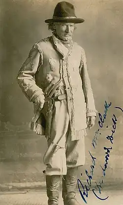 Settling in Deadwood, Clarke claimed the acquaintance of such notable figures as Wild Bill Hickok, Calamity Jane, Buffalo Bill Cody, Poker Alice Tubbs, and Captain Jack Crawford.[2] He adopted the moniker of "Deadwood Dick", long before Deadwood Dick became a famous fictional character.[3]