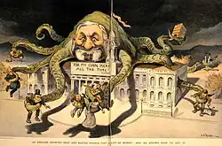 Richard Welstead Croker (November 24, 1843 – April 29, 1922), known as "Boss Croker", was an Irish American political boss who was a leader of New York City's Tammany Hall.[1] His control over the city was cemented with the 1897 election of Robert A. Van Wyck as the first mayor of all five boroughs. During his tenure as Grand Sachem, Boss Croker garnered a reputation for corruption and ruthlessness and was frequently the subject of investigations. As his power waned following the 1900 and 1901 elections, Croker resigned his position and returned to Ireland, where he spent the rest of his life.