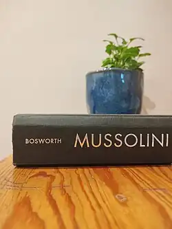 Bosworth wrote his first book as part of a series – Topics in Modern History – seeking to assist high school and university teachers and students, providing a "guiding and stimulating" overview of Fascist Italy, rather than in-depth historical analysis.[7] Noting that Fascist Italy has not garnered the attention of Nazi Germany, Bosworth makes clear his anti-Fascist tone from the beginning, aiming for "a more serious study of Italian Fascism than is usually given" by Anglo-Saxons 'misinterpreting and misunderstanding' Italian history.[8] He presents Italy up to 1945 as pretending to be a Great Power in Europe, despite poor geography and resources, and argues that this pretence has taken its toll.[8]