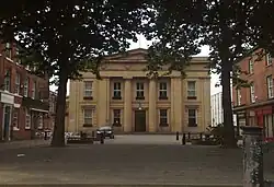 In 1830, the Chorlton Row Police Commissioners – essentially the administrative body of the Chorlton Row township – commissioned Lane to design a town hall on Cavendish Street. The Chorlton Town Hall was built by David Bellhouse;[9] Lane and Bellhouse would later work together on other projects. Indeed, Lane had a close connection with the Bellhouse family, and transferred his share in the Portico Library to David Bellhouse's son, Edward Taylor Bellhouse, in 1834.[10] The old town hall is now used by Manchester Metropolitan University.