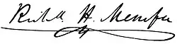 At age eighteen, Menefee entered Transylvania University in the junior class.[1] Though the college's rules forbade conveying degrees upon underage candidates, Menefee was granted an exception by President Horace Holley and graduated with his class.[1] Following his graduation, he read law with Judge James Trimble.[2] He returned to Mount Sterling, where he was admitted to the bar in 1830 and opened a law practice in 1831.[1] In October 1831, he enrolled at Transylvania University law school and on March 3, 1832, earned a law degree.[5] Notable in Menefee's graduating class was George W. Johnson, who would later serve as governor of Kentucky's provisional Confederate government during the Civil War.[6]