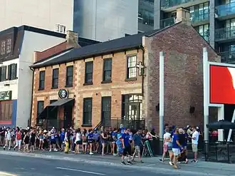 The home and plot of land was purchased by a developer in order to redevelop the land into a high rise condominium building. In order to do so, the home was moved in August 2011 from the south-west corner of Adelaide and John Streets further south on John to accommodate the initial site excavation.[6] The houses formerly housed "The Fox and Fiddle" pub and were repurposed into the "Sweet Jesus" cafe and ice cream shop after the move.