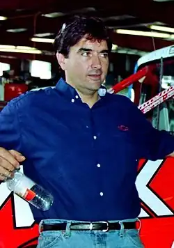After retiring from driving, he later became the team manager for Kevin Harvick Incorporated – a position that he held when Ron Hornaday won the 2007 championship.[2] He later worked with NTS Motorsports as the team general manager.[4] Carelli was also the spotter for the Stewart-Haas Racing No. 41, driven by Kurt Busch after first working with him at Furniture Row Racing;[5] FRR's general manager Joe Garone was Carelli's crew chief from 1989 to 1994.[6] He later became Erik Jones' spotter at FRR before following him to Joe Gibbs Racing and Richard Petty Motorsports.[5][7]