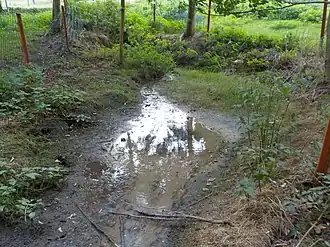 Just downstream, along the Rida, was the farm of Ruwet, still visible on cadastral maps in 1958,[11] with a pond where the last farmer, Mr. Colson, exploited watercress.[10] The pond has been filled in but wild watercress still grows, downstream of the spring area.