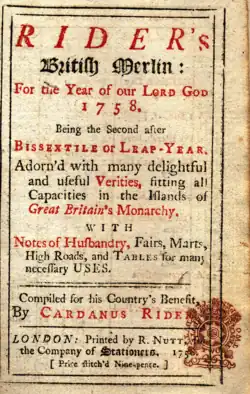 - ^ "Cardanus Rider's British Merlin Almanac 1758". littlebeams.co.uk. Retrieved 2022-02-14.