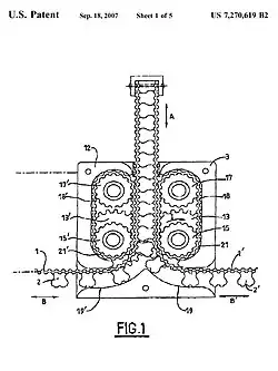 - ^ US 7270619, Bourc'His, Joël, "Linear belt actuator", published 2007-09-18, assigned to Serapid France
