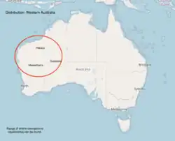 - ^ a b Melville, J.; Wilson, S.; Doughty, P.; Teale, R. (2017). "Ctenophorus caudicinctus". IUCN Red List of Threatened Species. 2017: e.T83410085A83453673. doi:10.2305/IUCN.UK.2017-3.RLTS.T83410085A83453673.en. Retrieved 20 November 2021.