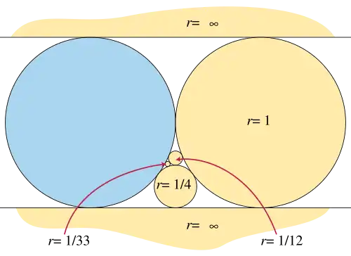 - ^ Aharonov, D.; Stephenson, K. (1997), "Geometric sequences of discs in the Apollonian packing", Algebra i Analiz, 9 (3): 104–140, MR 1466797