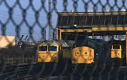 In the 1970s and 1980s Ripple Lane was considered a sub-shed of Stratford (SF).[8] At that time the depot had four roads each with an inspection pit. The building itself was of concrete and glass being long enough for a single Class 47 locomotive and without doors of any kind. In 1981 there were three Class 08 shunters outstationed at Ripple Lane shunting Ripple Lane yard and the nearby Ford factory.[9] In addition to these shunters, in excess of 15 locomotives could be expected to stable overnight[10][11] including shunters from Tilbury and Thameshaven.[6]
