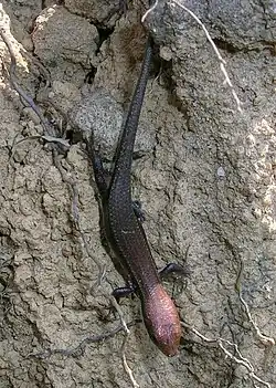 Ristella is a genus of skinks, lizards in the family Scincidae. The genus is endemic to the Western Ghats of southwestern India. Member species are commonly known as cat skinks because of their retractile claws. This genus can be instantly identified by the presence of only four fingers in forelimbs in all the species (instead of the usual five). All the members look more or less similar, and are drab dark brown to blackish in colouration, with paler undersides. This poorly known group of lizards is diurnal, insectivorous, terrestrial to semi-fossorial in habits. They inhabit deep leaf-litter and grasslands in montane forests and rainforests.
