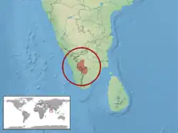 R. rurkii is found in South India, in the Anaimalai Hills, High Ranges, Travancore, and the Palni Hills, of Tamil Nadu and Kerala. It is endemic to rainforests south of Palghat Gap.