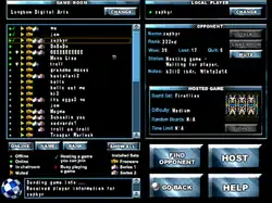 Upon the first visit online, the player is automatically connected to the game's default game room. A prompt is then made to create an online account by defining a username and a password. This is kept on the game's server to record the player's number of wins, losses and quits, and their rank. Alternatively, players can create and host their own hidden or public game rooms, operating as a server for other players to join. However, online accounts and their corresponding stats are limited to the specific game rooms that they were created within.