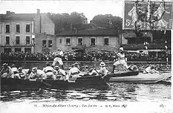 In 1837 H. Pétin and J. M. Gaudet, mechanics and forgers, set up shops at Saint-Chamond and Rive-de-Gier.[6] On 14 November 1854 Pétin et Gaudet merged and combined with four other companies to create the Compagnie des Hauts-fourneaux, forges et aciéries de la Marine et des chemins de fer.[6] The company, which engaged in extracting, processing and selling iron and coal was initially based in Rive-de-Gier. On 9 November 1871 it moved its headquarters to Saint-Chamond and became a limited company.[6]