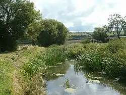 The River Cary has its source at Park Pond in Castle Cary, and then flows southwest through Cary Moor to Babcary, where there is a biological Site of Special Scientific Interest at Babcary Meadows and Cary Fitzpaine. It then flows northwest through Charlton Mackrell to the north of Somerton, passing under the Somerton Viaduct. Here the river channel has been straightened and drains the surrounding wetland as it heads north to Kings Sedge Moor. The Cary passes through King's Sedgemoor continuing west across the moors south of the Polden Hills. At Henley it joins the artificial channels of the Sutton Moor Rhyne and the King's Sedgemoor Drain, both of which drain the wetland. Much of the water is now diverted into King's Sedgemoor Drain, which continues across the moors to join the estuary of the River Parrett at Dunball.[3]