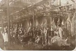 The majority of Argentine meat was bought by Britishmen, that wanted cuts with more meat with fewer bones and grease.[13] By 1900, the River Plate Meat Company already had 100 sales branches in the United Kingdom, which attracted attention with their uniform signage.[14] The company's London offices were located at Cecil House, Holborn Viaduct. The company achieved high trading profits of £67,822 in 1901, which increased to £272,475 in 1902, and paid a dividend of 10% and a bonus of 2 and 4 shillings per share in those two years.[10] After that, Argentine imports to Great Britain continued to increase, leading to competition on the London meat market with the Beef Trust of the United States and Australian and New Zealand meat exporters. Argentine meat was offered in London at a significantly lower price than meat from the United States, and was therefore very successful.[15] Before the First World War, the company already had 440 butcher shops before merging with James Nelson Ltd. in 1914 to form the British & Argentine Meat Co. [16]