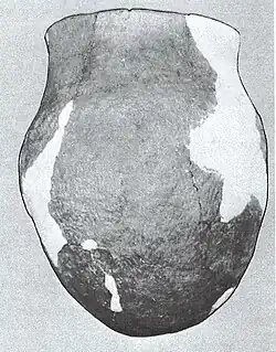 53 vessels of Wayne ward were recovered. Wayne ward is characterized by globular to slightly elongated vessels with constricted neck and outflared rims; grit-tempered with fine to medium grains; rims are plain and rarely decorated; and almost never castellated or collared. Surface finish is generally cordmarked. This type is similar to the "generalized woodland" or generic grit-tempered cordmarked vessels typical of the transition from Middle Woodland to Late Woodland.[1][6]