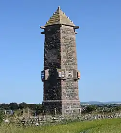 In the entrance hall of the council's Aberdeen Town House, there is on display a suit of armour that was allegedly worn by Robert Davidson at the Battle of Harlaw.[8] His tomb can still be seen in the Kirk of St Nicholas.[9][10] The National Library of Scotland holds a drawing of the effigy of Robert Davidson.[11] In 1911, the Harlaw Monument was erected in memory of Provost Robert Davidson and the Burgesses of Aberdeen who were killed at the Battle of Harlaw in 1411.[7]