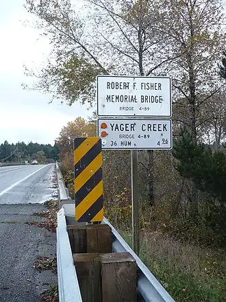 In 1969, the California Assembly named Bridge 04-089 which had been built the previous year over Yager Creek in Carlotta, after Fisher.[4] When he died, he was the last Spanish–American War veteran in Humboldt County.[4] The Fishers are buried in Ocean View Cemetery Alcove C, Niche 1.[3]
